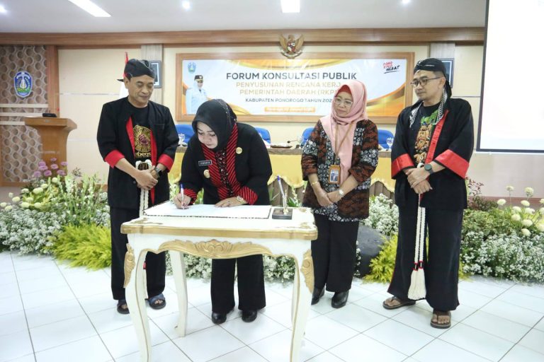 “Forum konsultasi publik menjadi bagian dari tahapan perencanaan pembangunan daerah yang dilaksanakan secara berjenjang, partisipatif, dan berkelanjutan.,” kata Plt Bupati Ponorogo Lisdyarita.