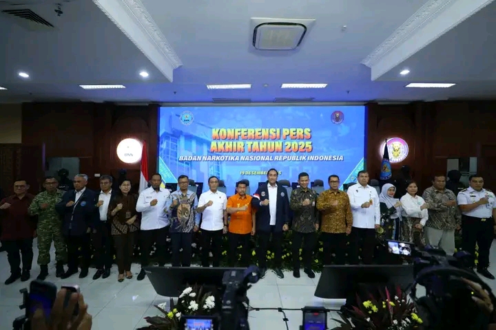 Jakarta.Panjinasionalnews.com.Badan Narkotika Nasional (BNN) menggelar Konferensi Pers Akhir Tahun 2025 pada Jumat (19/12), di Gedung BNN, Cawang, Jakarta Timur. Dalam hal ini BNN menegaskan komitmennya dalam Pencegahan dan Pemberantasan Penyalahgunaan dan Peredaran Gelap Narkotika (P4GN) di tengah dinamika ancaman narkoba yang semakin kompleks.