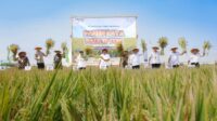 Wakil Gubernur Jawa Tengah Taj Yasin Maimoen Bersama Bupati Demak Eisti’anah dan Unsur Forkopimda Kabupaten Demak Melaksanakan Panen Raya Padi