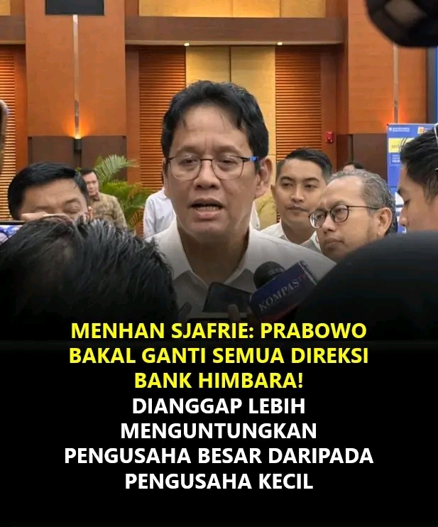 “Bank Himbara itu lebih menguntungkan pengusaha besar daripada pengusaha kecil untuk dikasih kredit. Oleh karena itu, Presiden akan memutuskan ganti semua direksi Bank Himbara,” kata Sjafrie saat memberikan materi kepada anggota Persatuan Wartawan Indonesia (PWI) yang mengikuti retret di fasilitas Pusat Kompetensi Bela Negara Badan Pengembangan Sumber Daya Manusia Pertahanan (BPSDM) di Cibodas, Rumpiang, Kabupaten Bogor, Jawa Barat, Sabtu (31/1/2026) dilansir dari Antara.