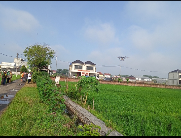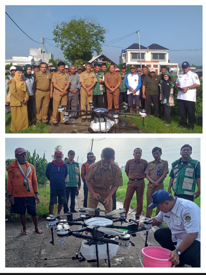 Terkait penyemprotan pestisida hayati menggunakan teknologi drone, Sekretaris Dispertakan Raswiyanto menjelaskan bahwa Penggunaan drone di pertanian Indonesia meliputi pemetaan lahan, pemantauan kesehatan tanaman (hama, penyakit, nutrisi), penyemprotan pupuk/pestisida presisi, hingga persemaian benih, yang semuanya bertujuan meningkatkan efisiensi, produktivitas, dan keberlanjutan dengan menghemat sumber daya dan mengurangi dampak lingkungan. Teknologi ini membantu petani mengambil keputusan lebih tepat, mengatasi area sulit dijangkau, dan mengotomatisasi tugas, meskipun tantangan biaya awal dan regulasi masih ada. “Drone ini bisa terbang selama 10 menit dan membawa beban pestisida hayati 20 liter.Dimana ini setara dengan penyemprotan lahan pertanian seluas satu hektare”, jelas Moch.Sholikin.