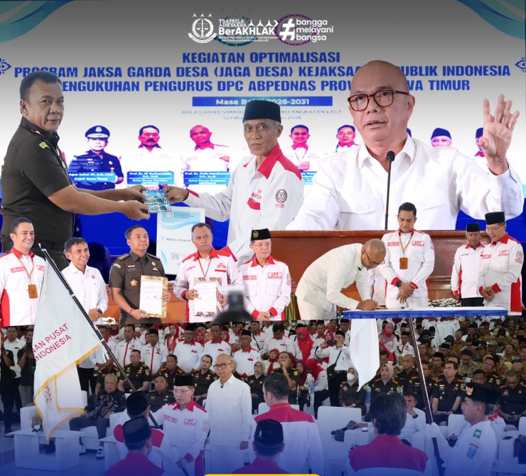 Surabaya.Panjinasionalnews.com.Jaksa Agung Muda Intelijen (JAMINTEL), Prof. Dr. Reda Manthovani melaksanakan kunjungan kerja ke Provinsi Jawa Timur dalam rangka penguatan implementasi Program Jaksa Garda Desa (Jaga Desa) serta pengukuhan DPC Asosiasi Badan Permusyawaratan Desa (ABPEDNAS) se-Jawa Timur yang berlangsung di Graha Samudera Bumimoro, Selasa (24/2/2026).