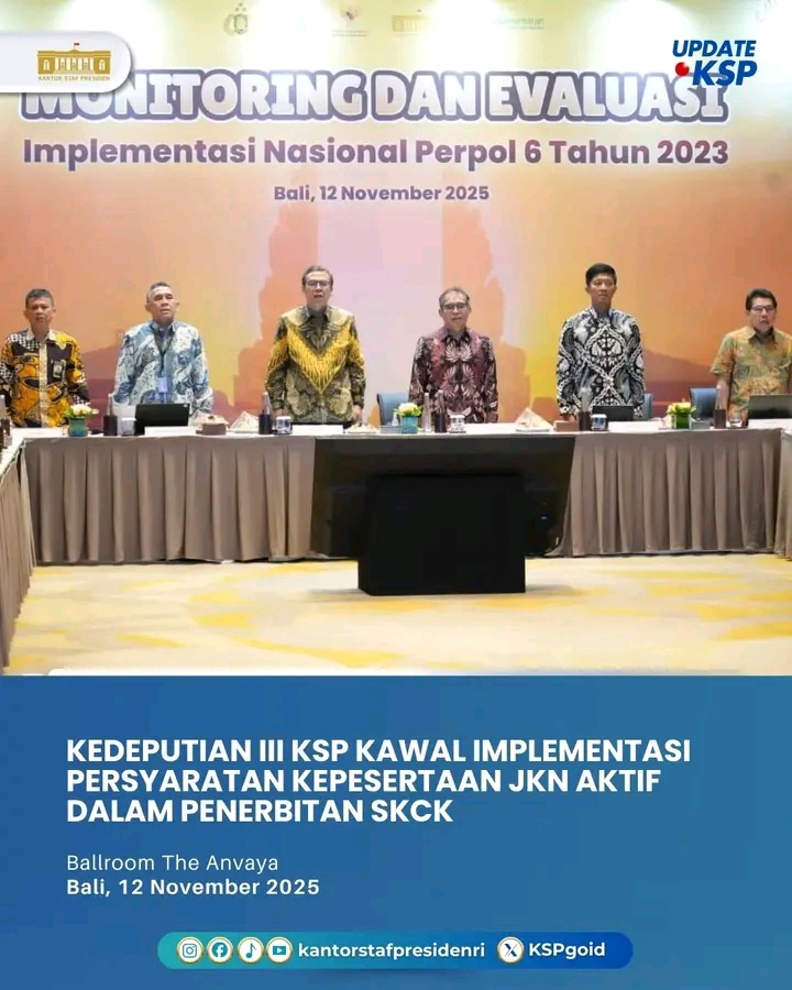 Dalam rapat yang dihadiri Pejabat Tinggi Madya dari @kemenkopmri, @sekretariat.kabinet, dan perwakilan Baintelkam Polri, KSP mengapresiasi langkah Baintelkam Polri dalam memastikan pemohon SKCK memiliki kepesertaan JKN yang aktif. KSP akan terus mendorong kolaborasi lintas-instansi untuk memperkuat implementasi kebijakan dan memastikan seluruh penduduk terlindungi dalam program Jaminan Kesehatan Nasional.(***)