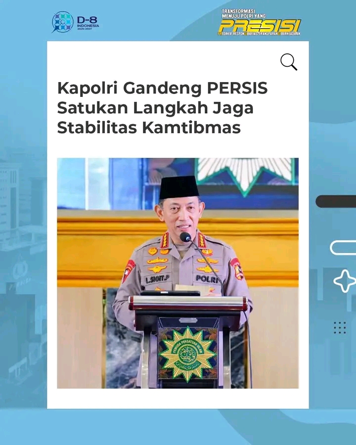 Jakarta.Panjinasionalnews.com.Kapolri Jenderal Polisi Drs. Listyo Sigit Prabowo, M.Si., mengajak para Pemuda Persatuan Islam (PERSIS) memperkuat sinergi dengan Polri untuk menjaga stabilitas kamtibmas. Hal tersebut disampaikan Kapolri saat membuka Muktamar XIV di Bandung, Jawa Barat, Sabtu (25/4). Dalam sambutannya, Kapolri menyoroti tantangan kejahatan modern seperti misinformasi, narkoba, dan kejahatan siber yang perlu dihadapi bersama seluruh elemen bangsa. Di tengah ketidakpastian global, Kapolri menekankan pentingnya persatuan, kolaborasi, dan peran pemuda dalam mendukung pemerintah serta menjaga keutuhan bangsa.