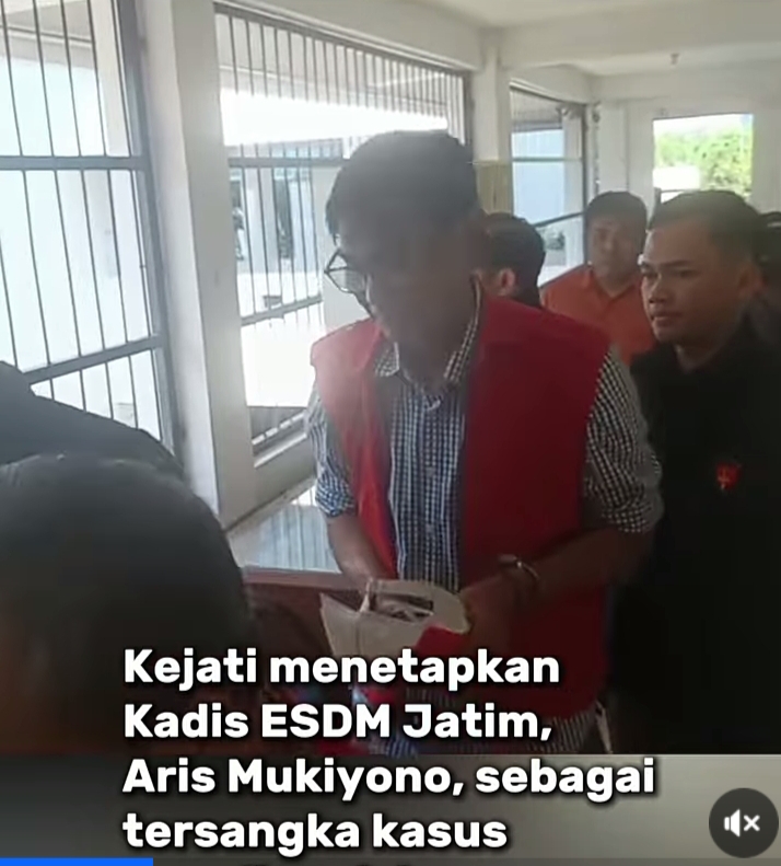 Surabaya.Panjinasionalnews.com.Kabar terbaru,Kejati Jatim melalui Asisten Tindak Pidana Khusus, Wagiyo telah menetapkan Kadis ESDM Jatim Aris Mukiyono sebagai tersangka dalam kasus pungutan liar perizinan. Oleh Tim Penyidik Kejati ,Kadis Aris Mukiyono diamankan di Bandara Juanda saat tiba dari Jakarta usai mengambil SK jabatan fungsional Penyelidik Bumi Ahli Utama. Dan keputusan Penetapan tersangka ini merupakan hasil penyelidikan dan berdasarkan laporan masyarakat dan pemohon izin yang mengaku telah diperas oleh oknum ESDM Jatim.(14/4).