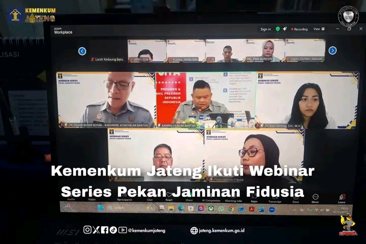 Semarang.Panjinasionalnews.com.Kantor Wilayah Kementerian Hukum Jawa Tengah, melalui Pejabat Fungsional Analis Hukum mengikuti kegiatan “Webinar Series “Pekan Jaminan Fidusia” secara virtual, Selasa (02/12).
