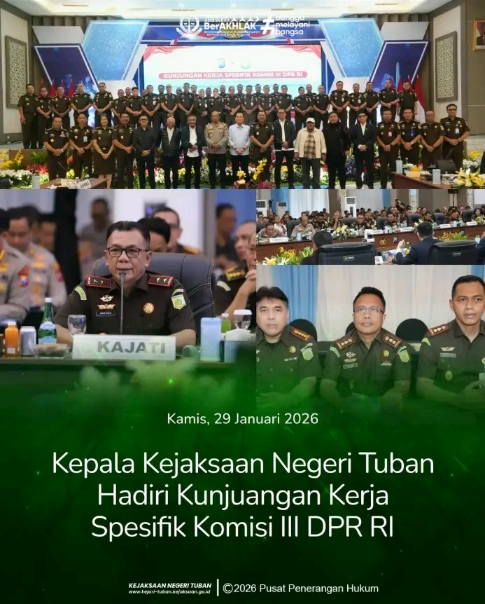 Tuban.Panjinasionalnews.com.Pada hari Kamis, tanggal 29 Januari 2026, mulai pukul 11.30 WIB, bertempat di Markas Kepolisian Daerah Jawa Timur, telah dilaksanakan kegiatan Kunjungan Kerja Spesifik Komisi III Dewan Perwakilan Rakyat Republik Indonesia (DPR RI) di Provinsi Jawa Timur pada Masa Persidangan III Tahun Sidang 2025–2026. Kegiatan tersebut dipimpin oleh Adang Daradjatun selaku Ketua Tim bersama para Anggota Komisi III DPR RI.