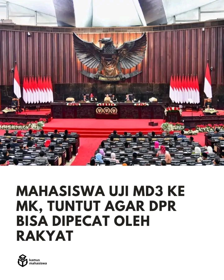 Artikel.Panjinasionalnews.com.Lima mahasiswa resmi mengajukan permohonan pengujian konstitusionalitas terhadap Pasal 239 ayat (2) huruf d Undang-Undang Nomor 17 Tahun 2014 tentang MPR, DPR, dan DPRD (UU MD3) ke Mahkamah Konstitusi (MK).(Dilansir dari Sumber kamus mahasiswa).