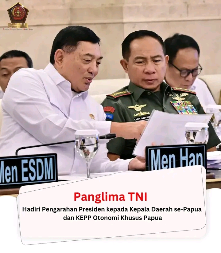 Jakarta.Panjinasionalnews.com.Panglima TNI Jenderal TNI Agus Subiyanto menghadiri Pengarahan Presiden Republik Indonesia Prabowo Subianto kepada para Kepala Daerah se-Papua serta Komite Eksekutif Percepatan Pembangunan Otonomi Khusus Papua (KEPP OKP) terkait Percepatan Pembangunan Papua di Istana Negara, Jakarta, Selasa (16/12/2025).