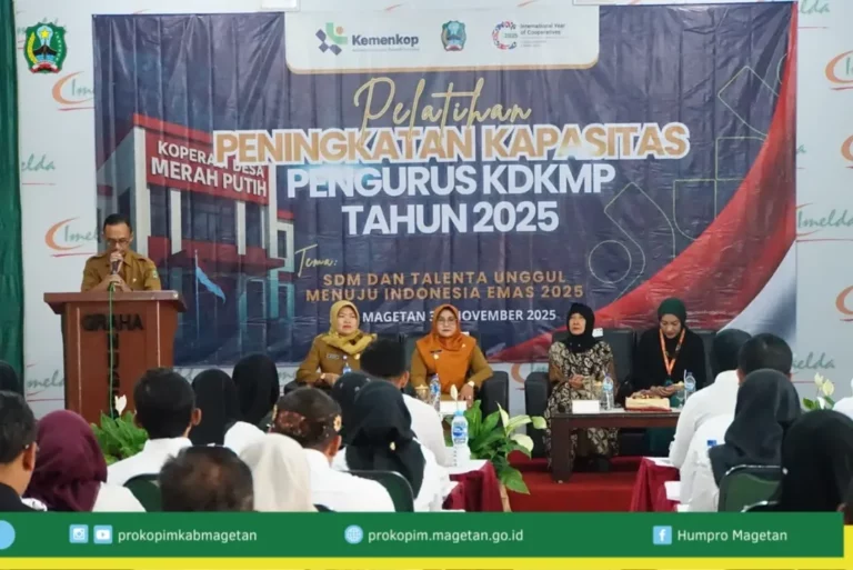 Magetan.Panjinasionalnews.com.Pemerintah Kabupaten Magetan melalui Dinas Koperasi dan Usaha Mikro menggelar Pelatihan Sumber Daya Manusia (SDM) bagi pengurus Koperasi Desa/Kelurahan Merah Putih (KDKMP) sebagai langkah memperkuat kapasitas dan profesionalitas pengelolaan koperasi di tingkat desa.(Dilansir dari Sumber Prokopim).