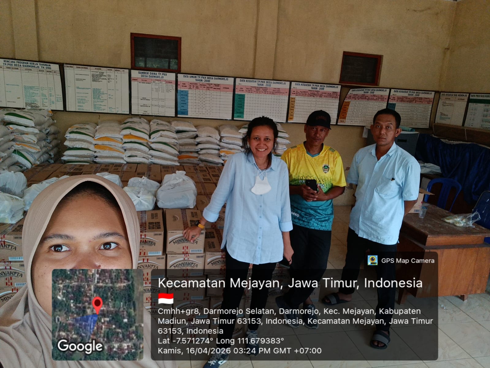 Melalui pemerintahan desa yang berkolaborasi dengan instansi terkait, Pemerintah Desa Darmorejo,Kec.Mejayan,Kab Madiun telah melakukan penyaluran Bantuan Pangan Gratis bagi masyarakat penerima manfaat yang datanya sudah terverifikasi di sistem DTKS . Menurut keterangan PJ Kades Pardiman bahwa pemerintahan desanya sudah melakukan penyaluran Bantuan Pangan Gratis ke KPM.Adapun jumlah KPM yang ada di desanya ada 719 KPM.”Masyarakat penerima manfaat yang datanya sudah terverifikasi,berhak menerima bantuan pangan gratis tersebut.Setiap KPM akan menerima bantuan pangan gratis 20 Kg beras dan 4 Liter.Dan jumlah KPM yang ada di Desa Darmorejo ini ada 719 KPM,” terang PJ Pardiman.