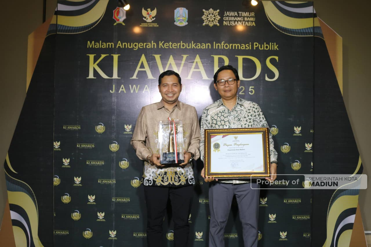 Madiun.Panjinasionalnews.com.Pemerintah Kota Madiun meraih predikat Pemerintah Kabupaten/Kota Informatif dalam mewujudkan keterbukaan informasi publik dengan nilai 98,90 pada ajang KI Awards Provinsi Jawa Timur 2025. Penghargaan tersebut diserah terimakan langsung oleh Wakil Wali Kota Madiun, F Bagus Panuntun di Bojonegoro.
