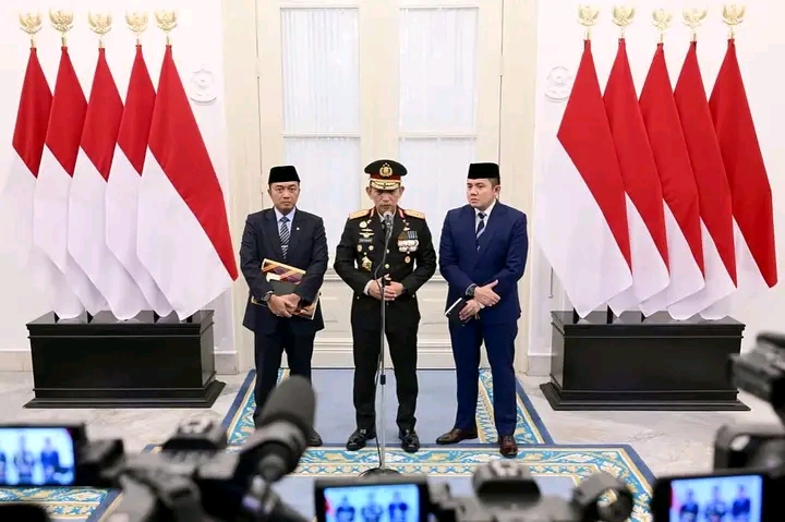 Jakarta.Panjinasionalnews.com.Menteri Sekretaris Negara Prasetyo Hadi, Sekretaris Kabinet Teddy Indra Wijaya, dan Kapolri Jenderal Listyo Sigit Prabowo menyampaikan keterangan pers di Istana Merdeka, Jakarta, Jumat (07/11/2025), menyusul terjadinya ledakan di lingkungan SMA Negeri 72 Jakarta Utara pada siang hari tadi.