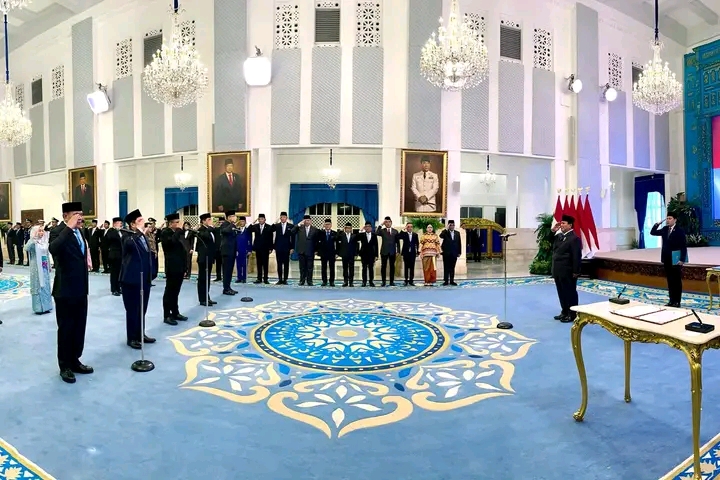 Jakarta.Panjinasionalnews.com.Presiden Prabowo Subianto secara resmi melantik dua jabatan menteri dan tiga wakil menteri Kabinet Merah Putih sisa masa jabatan 2024-2029 di Istana Negara, Jakarta, Rabu (17/09/2025).(Dilansir dari Sumber Kemensetneg)