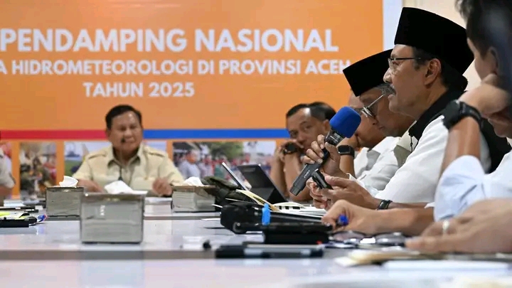 Jakarta.Panjinasionalnews.com.Presiden Prabowo Subianto memimpin rapat terbatas khusus bersama sejumlah menteri, Panglima TNI, Kapolri, Kepala BNPB, Gubernur dan sejumlah pihak di Pos Pendamping Nasional Penanganan Bencana Alam Aceh yang berlokasi di Pangkalan TNI AU Sultan Iskandar Muda, Aceh Besar, pada Minggu, 7 Desember 2025.