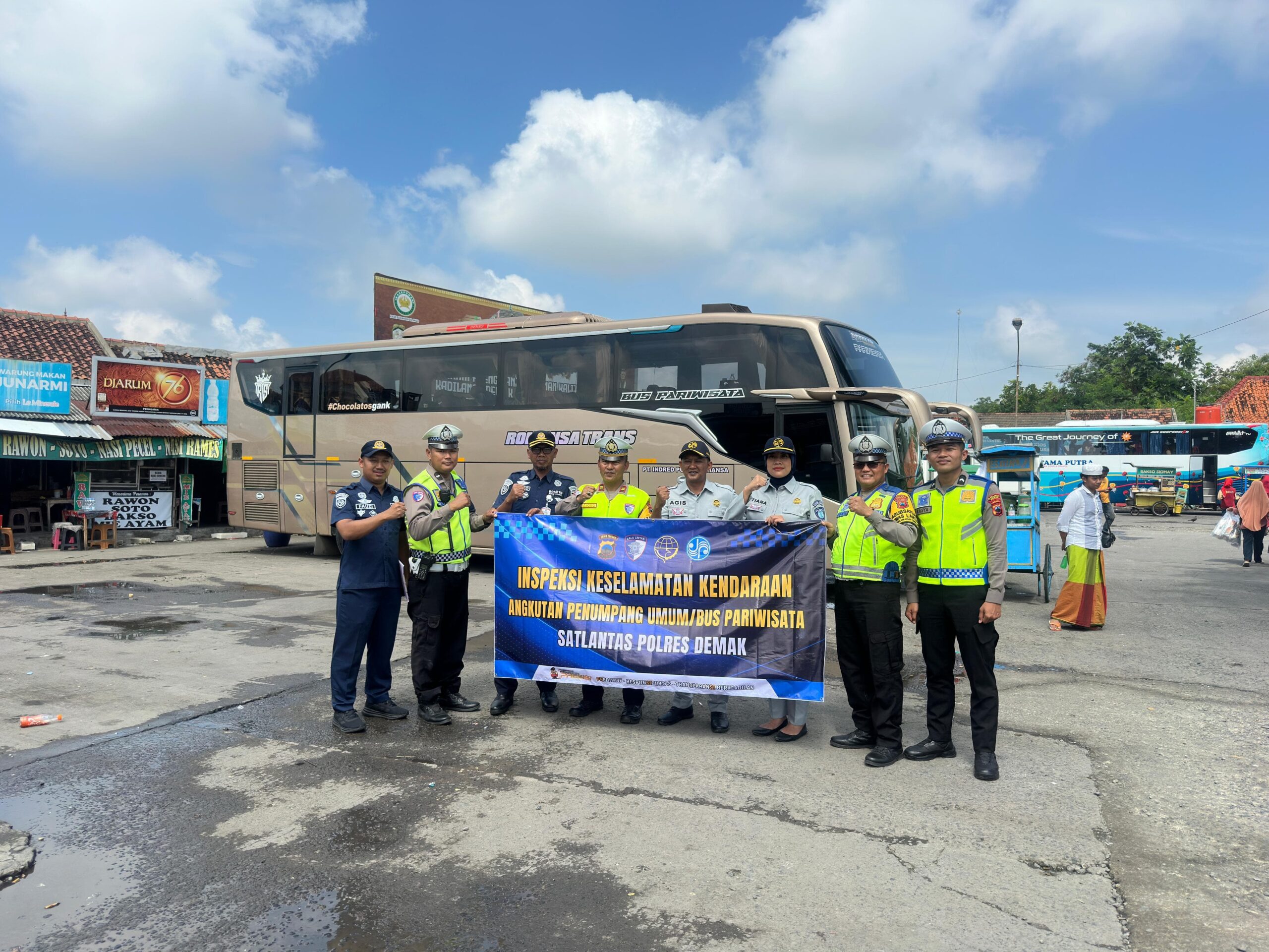 Demak.Panjinasionalnews.com.Satuan Lalu Lintas (Satlantas) Polres Demak bersama Jasa Raharja dan Dinas Perhubungan Kabupaten Demak menggelar inspeksi keselamatan kendaraan atau ramp check di Terminal Wisata Kadilangu, Kabupaten Demak, Rabu (4/2/2026). Kegiatan ini merupakan bagian dari rangkaian Operasi Keselamatan Candi 2026 yang berlangsung pada 2–15 Februari 2026.