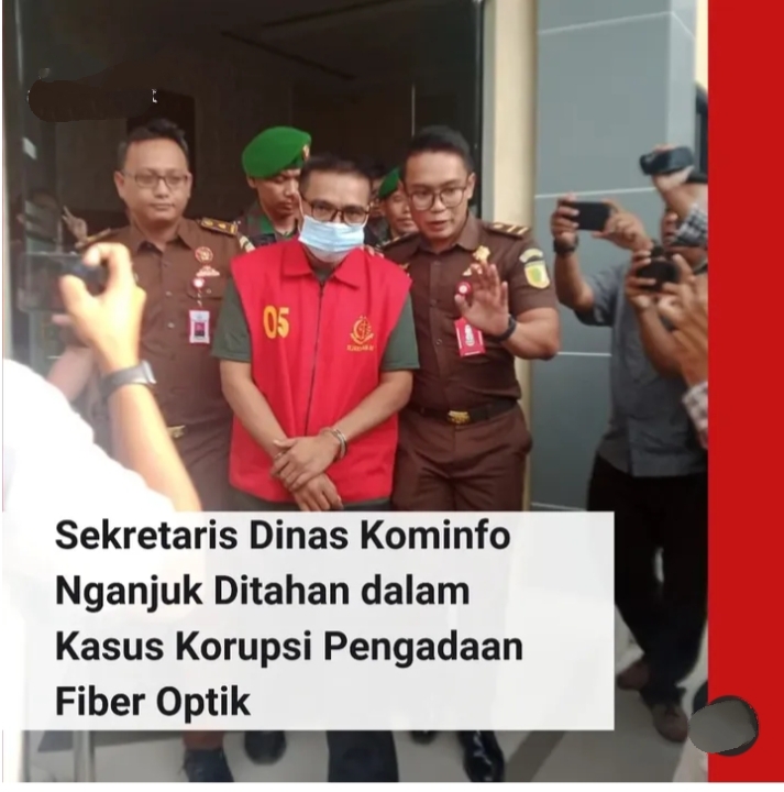 Nganjuk.Panjinasionalnews.com.Sekretaris Dinas Komunikasi dan Informasi Kab.Nganjuk tersandung kasus korupsi terkait proyek pengadaan jaringan intra fiber optik tahun 2024 dengan nilai Rp 6 M.Kejaksaan Negeri Nganjuk mendapatkan laporan pengaduan dari masyarakat dan terus melakukan penyelidikan lebih lanjut.Tim Kejari menemukan adanya dugaan penyalahgunaan jabatan yang dilakukan oleh Sujono.Tersangka melakukan tindak pidana korupsi setelah memiliki jabatan baru dari Pejabat Penatausahaan Keuangan (PPKeu) kemudian diangkat menjadi Pejabat Pembuat Komitmen (PPK) pada 8 Oktober 2024.Sujono diduga melakukan tindak Pidana Korupsi dengan modus memaksa pihak penyedia proyek memberikan uang kompensasi Rp 70 juta setiap bulan selama masa kontrak berjalan.