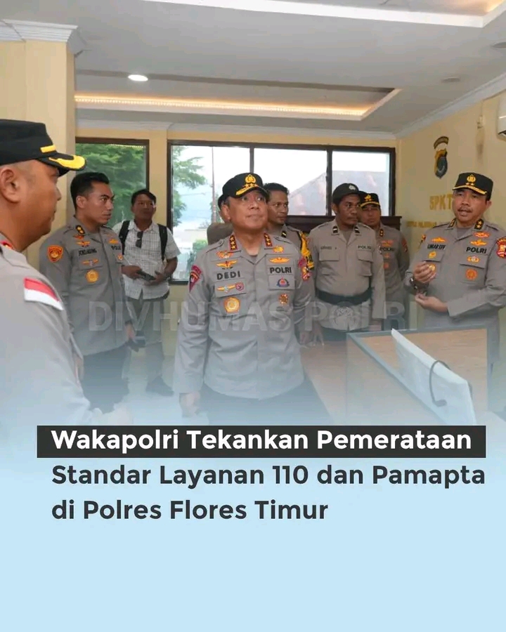 NTT.Panjinasionalnews.com.Wakapolri Komjen Pol. Prof. Dr. Dedi Prasetyo, S.H., M.Hum., M.Si., M.M., meninjau langsung pelayanan SPKT serta kesiapan Pamapta dan layanan 110 di Polres Flores Timur, Sabtu (29/11). Kegiatan ini menjadi bagian percepatan transformasi Polri menuju pelayanan yang modern dan responsif. Didampingi Kapolda Nusa Tenggara Timur (NTT) Irjen Pol. Dr. Rudi Darmoko, S.I.K., M.Si., Wakapolri menyapa personel, mengecek peralatan, serta kesiapan operator 110 dan Pamapta sebagai garda terdepan pelayanan masyarakat.